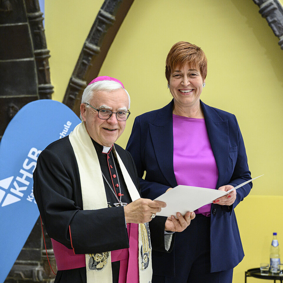 Am 7. Oktober 2025 feierten wir die Wiederwahl des Präsidiums mit Gästen, Wegbegleiter*innen und Mitarbeitenden. Die zweite Amtszeit steht für Kontinuität und Erfahrung, sowie neue Impulse und ein klares Bekenntnis zur Weiterentwicklung unserer Hochschule – mit einem erfahrenen Team an der Spitze und einer nachhaltigen Vision für die Zukunft der KHSB.