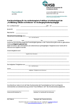… für das studienintegrierte Praktikum in Verbindung mit der „Profilbildung Teilhabe und Inklusion“ im Studiengang Kindheitspädagogik Vor- und Nachname: Anschrift: ____________________________________geb. am…