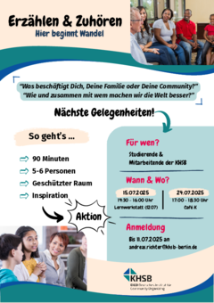 “Was beschäftigt Dich, Deine Familie oder Deine Community?” “Wie und zusammen mit wem machen wir die Welt besser?” So geht’s ... Für wen? Studierende & Mitarbeitende der KHSB 90 Minuten 5-6