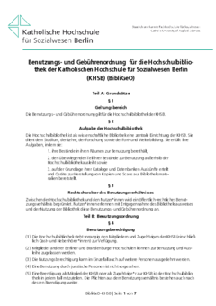 Benutzungs- und Gebührenordnung für die Hochschulbibliothek der Katholischen Hochschule für Sozialwesen Berlin (KHSB) (BibliGeO) Teil A: Grundsätze §1 Geltungsbereich Die Benutzungs- und