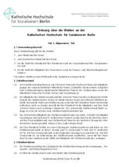 Ordnung über die Wahlen an der Katholischen Hochschule für Sozialwesen Berlin Teil 1: Allgemeiner Teil § 1 Anwendungsbereich Diese Wahlordnung gilt für die Wahlen 1. zum Akademischen Senat, 2. zum