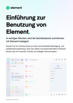 Einführung zur Benutzung von Element. In wenigen Minuten sind Sie betriebsbereit und können mit Element loslegen! Element ist ein sicheres Ende-zu-Ende verschlüsseltes Messaging- und