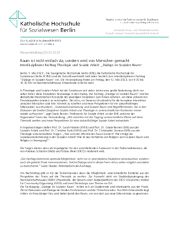 Stabsstelle Presse- und Öffentlichkeitsarbeit Kontakt: Susanne Dreistadt | presse@khsb-berlin.de Pressemitteilung | 05.05.2023 Raum ist nicht einfach da, sondern wird von Menschen gemacht