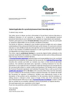 Katholische Hochschule für Sozialwesen Berlin Catholic University of Applied Sciences Katholische Hochschule für Sozialwesen Berlin (KHSB) Köpenicker Allee 39–57, 10318 Berlin Field Placement