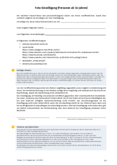Foto-Einwilligung (Personen ab 16 Jahren) Wir möchten Fotos/Videos und personenbezogene Daten von Ihnen veröffentlichen. Damit dies rechtlich möglich ist, benötigen wir Ihre Einwilligung. Ich willige