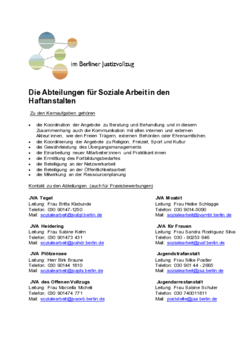 …Die Abteilungen für Soziale Arbeit in den Haftanstalten Zu den Kernaufgaben gehören • • • • • • • • die Koordination…