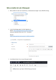 … Etherpad: 1. Bitte erstellen Sie über das Auswahlmenü „Arbeitsmaterial anlegen“ einen LINK/URL-Eintrag 2. In den…